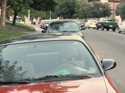 Tyler and I were walking to school this morning when we saw a car, not two blocks from our house, that had a green parking ticket on it. We kind of stood there looking at the car, thinking, “What did they do wrong?” We even wanted to open up the envelope to see what the offense was. Turns out almost every car down that street had a green “parking ticket” on it. We knew something was fishy…