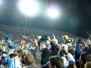 (The above pictures are on rushing the field after the game, and are at the victory bell. That was my first time rushing the field, ringing the victory bell, and with Cosmo! yes!)