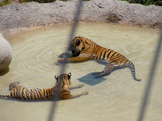 I’ve decided Tyler is a good luck charm – growing up, in all of my family’s visits to the Park we have collectively only seen the tigers maybe twice. And we got lucky those two times. The tram (which I am upset that they got rid of, but that’s another story…) always paused at the tiger enclosure for a minute or so and everyone would climb to the side to see if the tigers were visible. The tram driver would then tell everyone that 99.9% of the time, they can’t be seen because they hide in the bushes all day. (The entire enclosure is filled with thick bushes and trees to simulate a jungle habitat.) I remember seeing them once, and the tram driver literally sat there in awe for a few minutes while we all gazed.