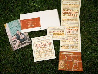 To fill the void, I’ve been spending lots of time browsing design blogs and whatnot. In the past few days I have happened to come across some wedding blogs that feature beautiful invitations. I think if I could go back and change one thing about our wedding, it would be to have spent much more time on our invitations. I was a newbie designer who didn’t know my own capabilities yet. I wish I would have had the time to really express our personalities through our invitations (although I don’t think anyone but me would have appreciated them).