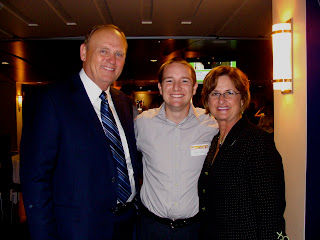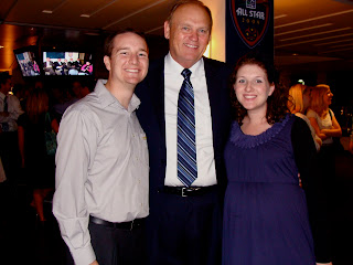 Tyler had a mission reunion last night, and it was held at Rio Tinto Stadium (where Real Salt Lake plays). (And I know there are plenty of you who are still confused – Real Salt Lake is a soccer team.) It was held in the Club room, which was super nice! I have been in a few club rooms before (I think I went to the SDSU one with Mom and Dad for a Chevron thing, and when I worked for BYU Catering we catered lots of events in BYU’s) but this one was different. The floors were a gorgeous dark hardwood, and there was a large deck that overlooked the stadium. It was phenomenal – one of the cooler places to hold a mission reunion.