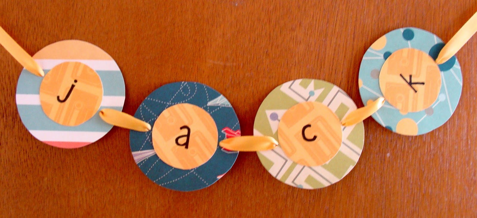 My older sister told me to keep busy, but since Tyler took our car today, I am stuck at home. I decided to make one last craft for his room, one to go on his door. I used the same set of paper that I used for his JACK bunting and his pinwheel mobile.