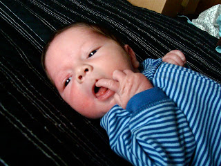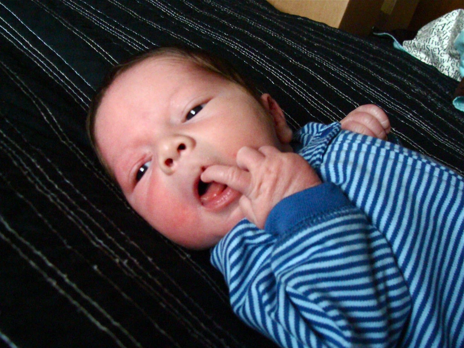 This little boy loves to talk. He will lay in his crib, waiting to be picked up after nap time and just talk and talk and talk. He takes after both his Mommy and Daddy!