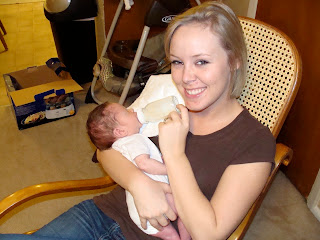 Jack is doing fantastic! He is so alert and awake, but calm most of the time. He really doesn’t cry all that much (yet). The past two nights I’ve gotten quite a bit of sleep – he has slept for four hours at a time! I’ve frantically woken up at 2:30am the past two nights, wondering if he was still breathing, haha! So I wake him up a little to feed him, and he falls asleep again within an hour. Then I get three to four more hours of peace and quiet before he gets restless and wakes up. Really, not bad at all! (But don’t get me wrong – the first three nights at home were awful – he would fuss and want a bottle every 45 minutes or so the entire night.) So hopefully I can get him on some sort of a schedule soon. We’re still working on getting him to eat a full 2oz. of milk at each feeding though. But he’ll work up to it. :)