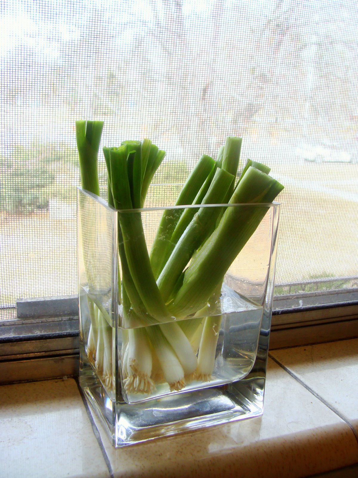 My second tip is for the kitchen. You can keep green onions for months at a time. Just trim off what you need and stick the rest in a jar with water, and place it on the windowsill. The green onions will continue to grow and you can keep cutting them as you need to!