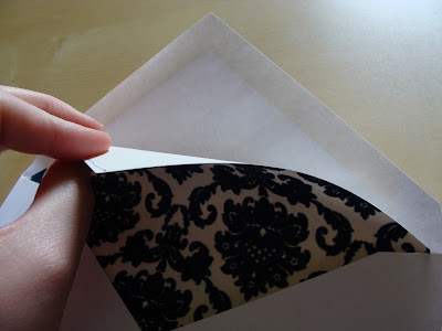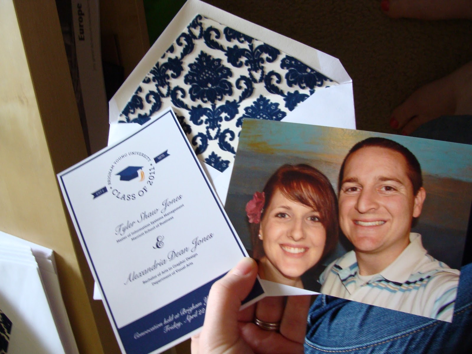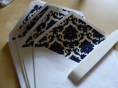 To spruce up our graduation announcements, I thought it would be nice to line our envelopes with some decorative craft paper. And boy, did I find the best craft paper! It’s BYU-blue, velvety and baroque-like.