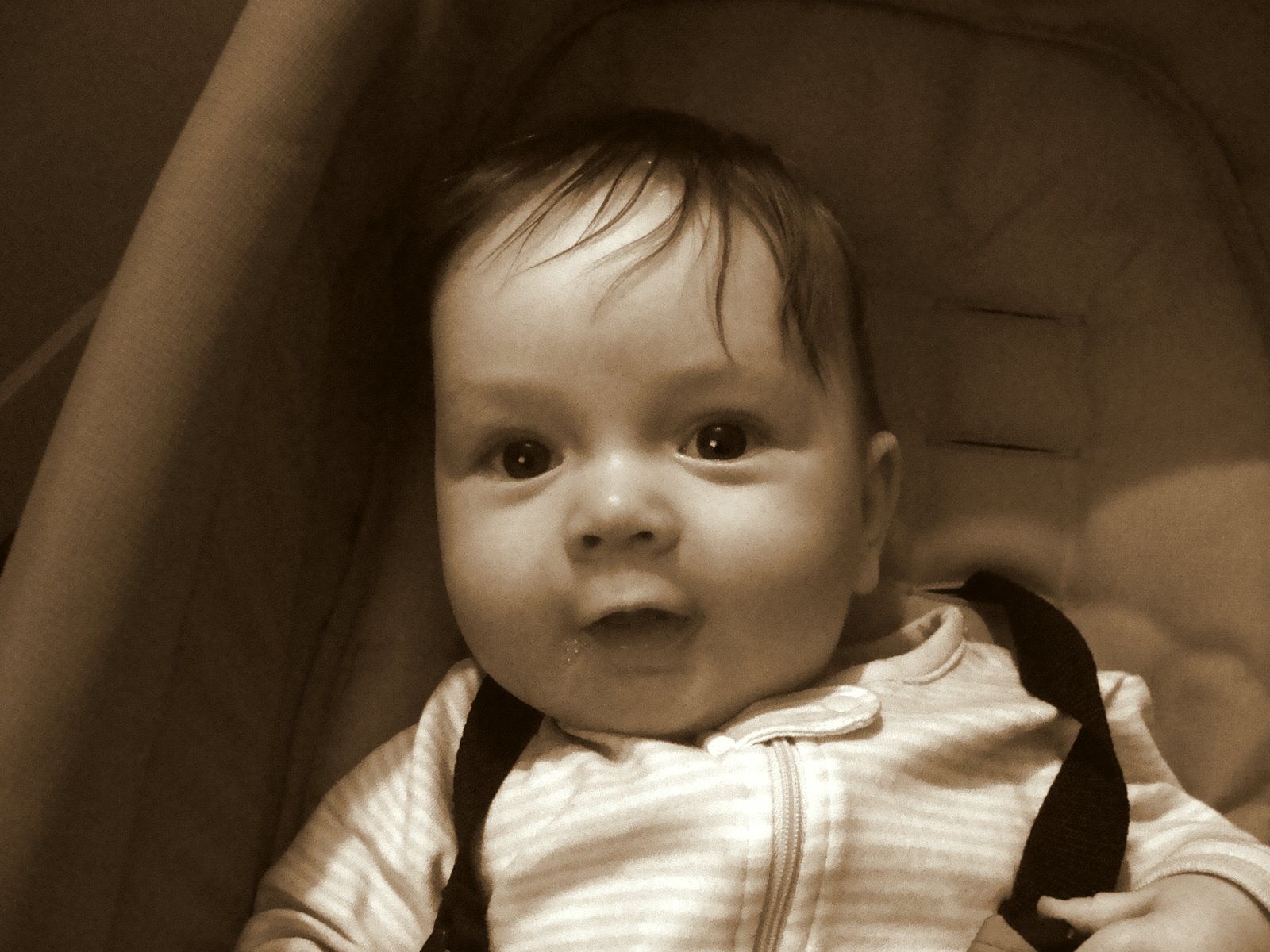 Every morning for the past month or so Tyler and I would wake up to a “clunk, clunk, clunk” sound. Took me a while to figure out that he was scooting around in his crib sideways so he could stick his feet out! The front side of the crib drops down (on hinges – it doesn’t slide down) and he’s realized if he kicks it, it will go back and forth and makes a great play toy. What a boy.